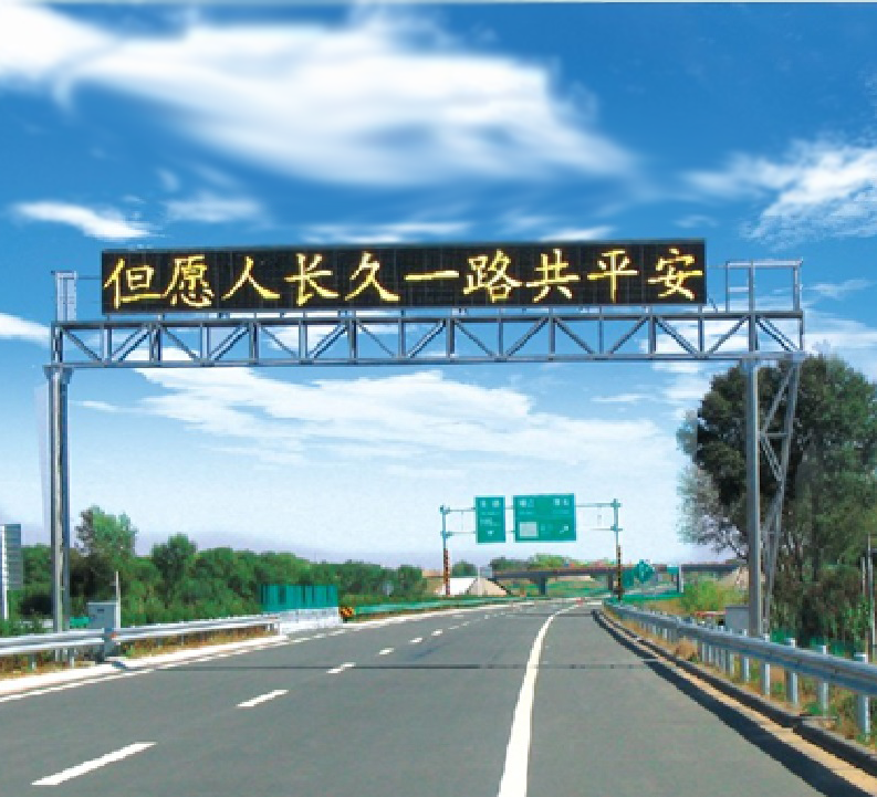 V8420型門架式可變信息情報(bào)板由門架、LED顯示屏、控制器、供電系統(tǒng)、通訊系統(tǒng)組成,安裝于高速公路車道正上方,由監(jiān)控平臺控制,可顯示文字及圖形,用于向駕駛員發(fā)布路況、誘導(dǎo)、宣傳及警示信息。